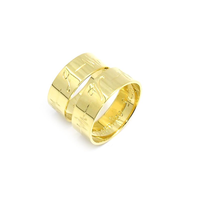 O ouro é considerado um metal precioso e durável representando a força e a eternidade do vínculo entre duas pessoas. Além disso alianças de ouro são geralmente apreciadas por sua beleza e valor tornando-as uma escolha popular para eternizar o amor.